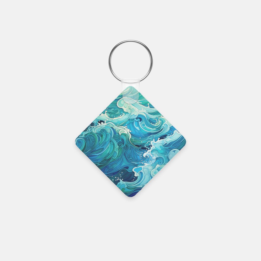 Key Chain (Square) - Aqua Waves